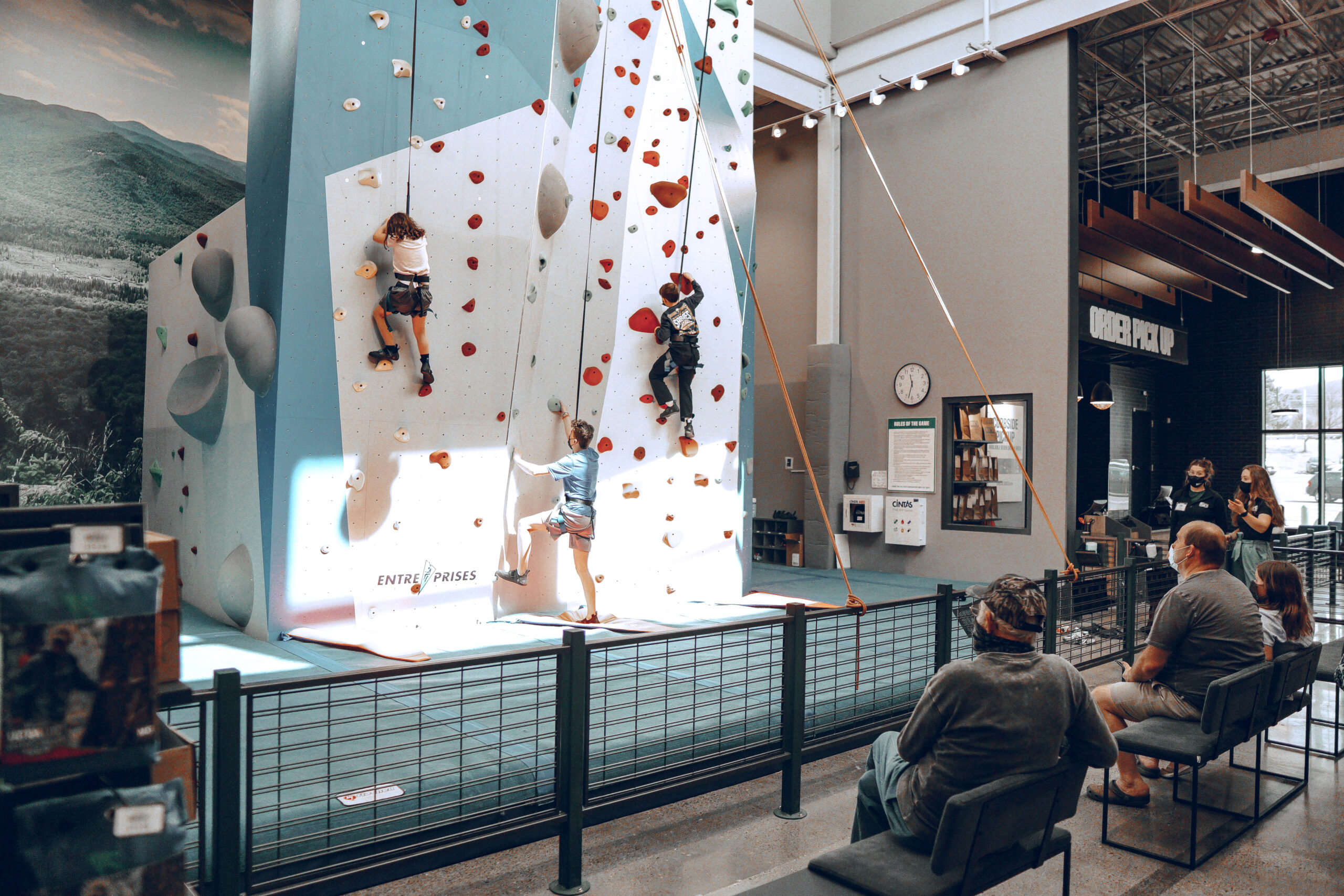 One of the first things that hit me was the massive size of the facility – this allows for some pretty incredible experiences. First up is the 32-foot rock wall with various difficulty levels. Reserve your spot online or in-store for $8 to test your climbing skills. Also on-site is a 17,000 square foot outdoor track and field with lawn games and other activities. What’s awesome is that in the winter, the field is transformed into an outdoor ice rink.