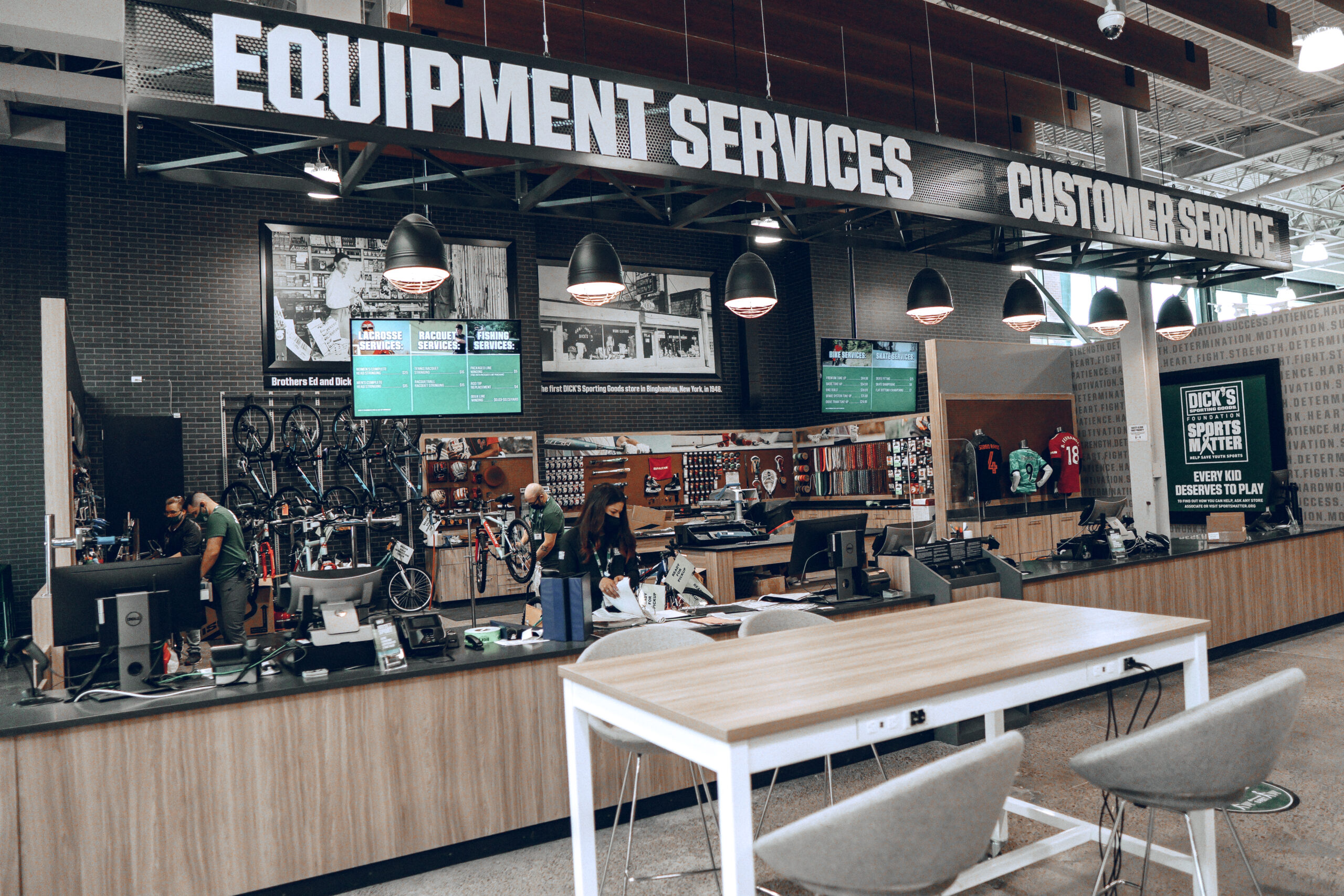 There’s also a dedicated service desk that provides all sorts of additional services, including: baseball glove steaming and relacing; bat regripping, racquet and lacrosse head stringing; bike repairs; t-shirt pressing and more! Best of all, almost all services are approximately a one-day turnaround time.