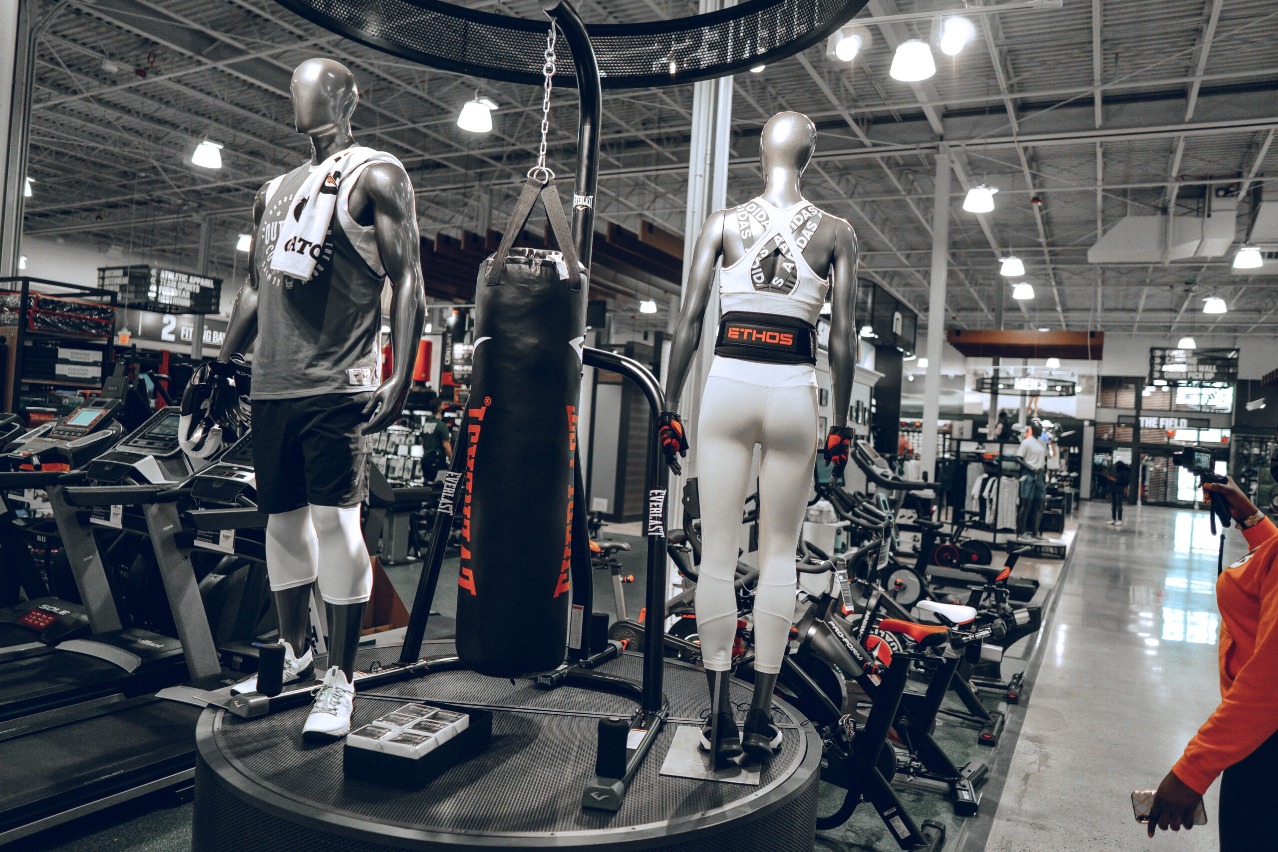 The facility is 100,000 square feet and the largest footwear deck of any DICK’S store, with the ability to house thousands of shoes and even a dedicated basketball shoe section. The House of Sport also features fitting rooms equipped with treadmills for Gait analysis, Instagrammable backdrops, a massive outdoor product section including a selection of bikes for men, women and children, camping, hiking and kayaking sections featuring a variety of YETI and Hydro Flask products, and even a health and wellness area featuring locally pressed juices, protein powders and yoga blocks and accessories.